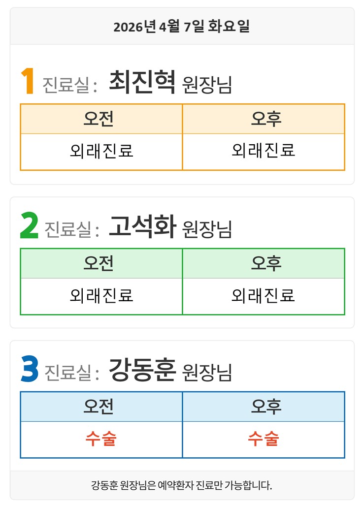 4월7일(화) 외래일정입니다.