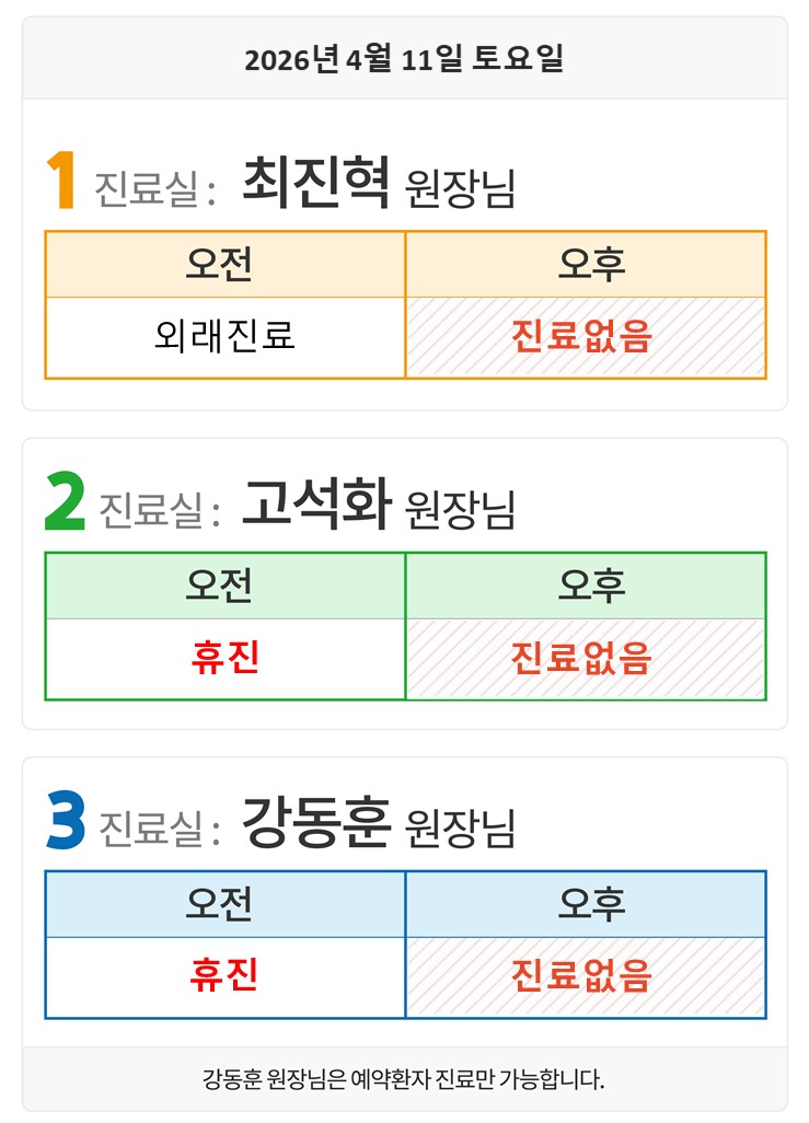 4월11일(토) 외래일정입니다.