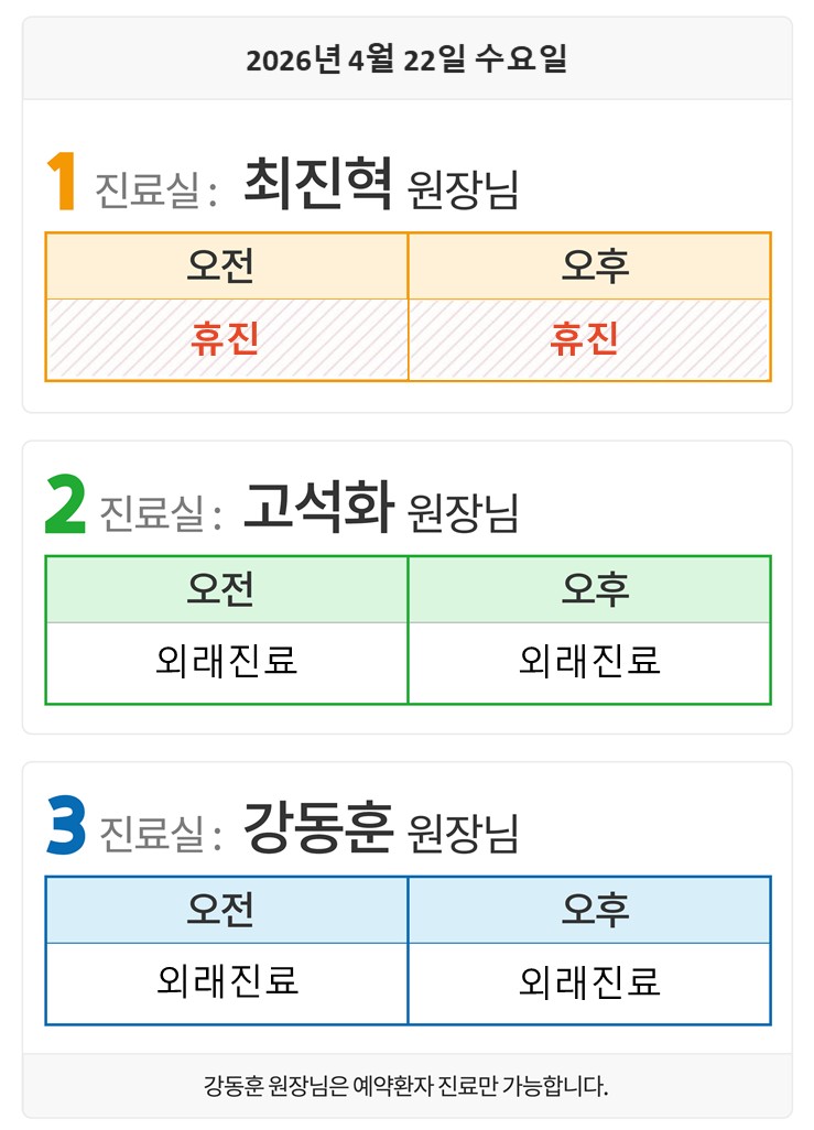 4월22일(수) 외래일정입니다.