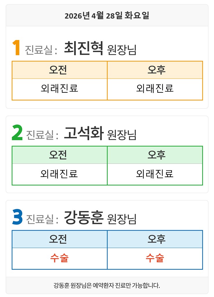 4월28일(화) 외래일정입니다.