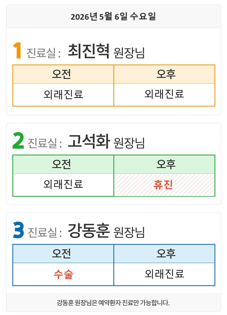 5월6일(수) 외래일정입니다.